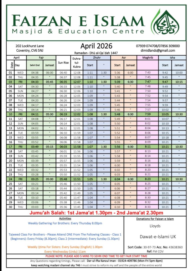 Prayer Time Table