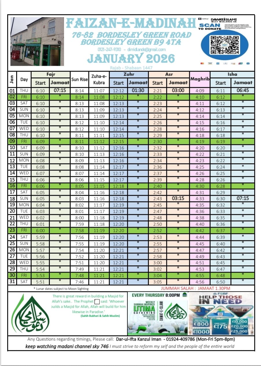 Faizan-E-Madinah | 76-82 Bordesley Green Road Bordesley Green B9 4taJanuary 2026